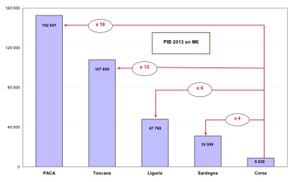La querelle est locale : il s’agit, d’un point de vue national, d’une consultation qui concerne 320 000 personnes, soit la plus petite des futures régions. Celle qui est à l’avant dernière place, tant en population qu’en PIB, est le Centre – Val de Loire avec 2,6 millions d’habitants. Elle a un PIB de 69,6 milliards d’€ alors que celui de la Corse est de 8,2 milliards d’€. Mesurons l’écart !